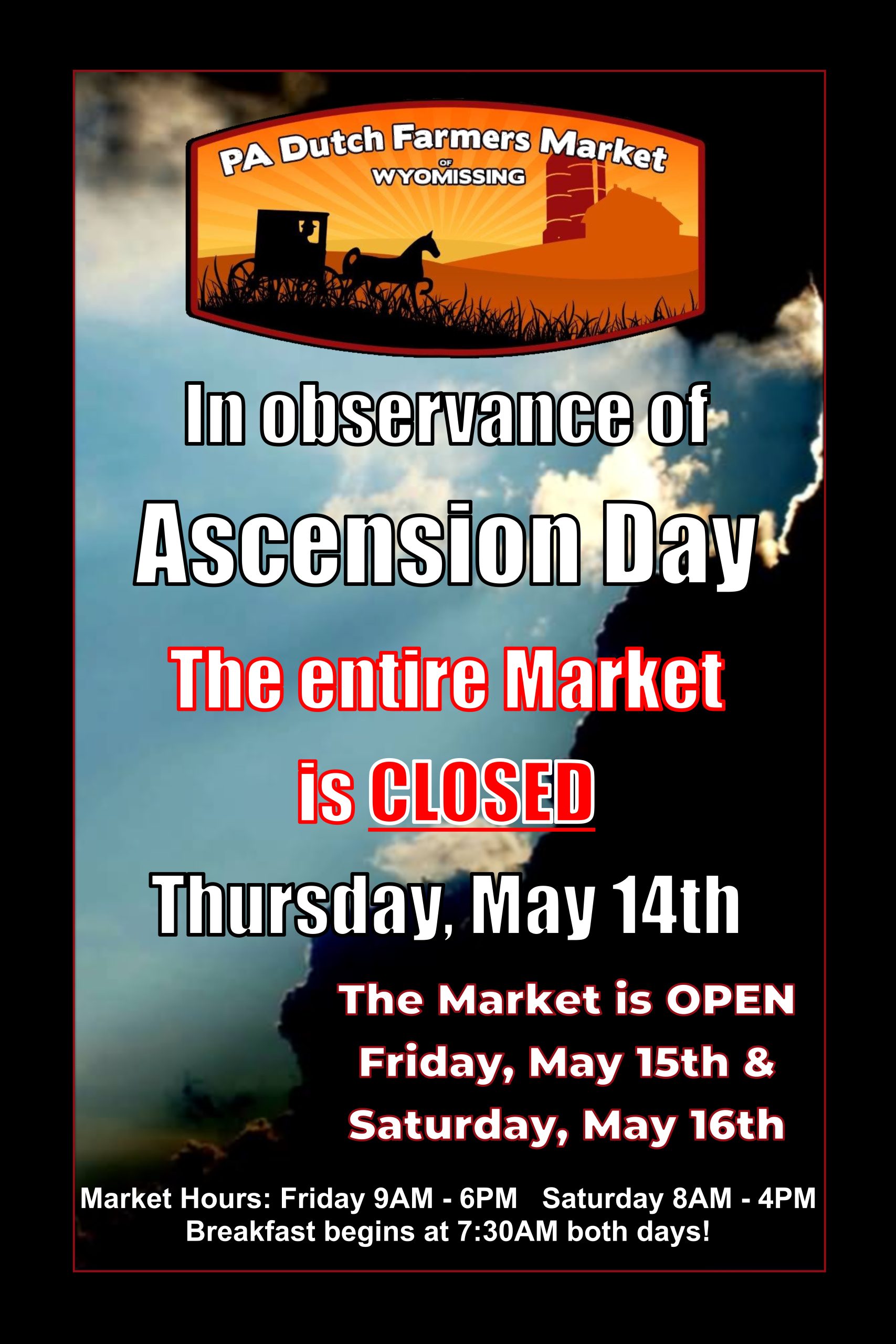 The Market will be CLOSED on Thursday, May 14th in observance of Ascension Day!